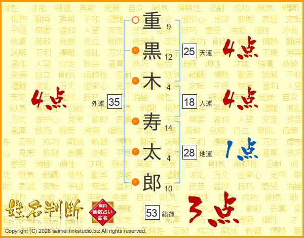 重黒木寿太郎さんの総運は53画の3点!