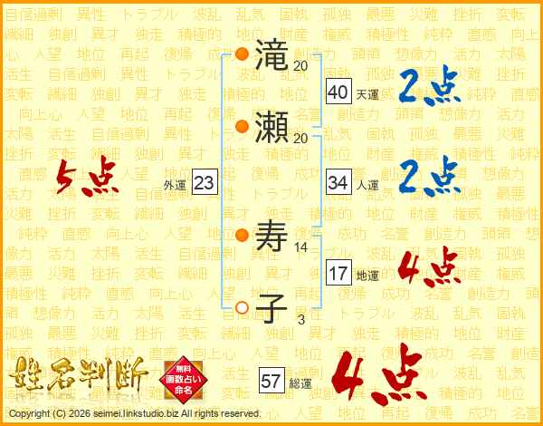 滝(20画)瀬(20画) 寿(14画)子(3画)