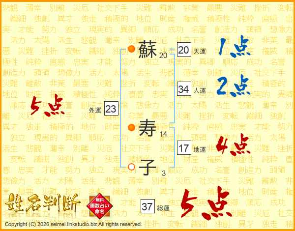 蘇寿子さんの総運は37画の5点!