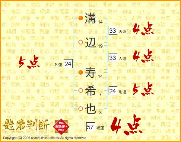 溝辺寿希也さんの総運は57画の4点!