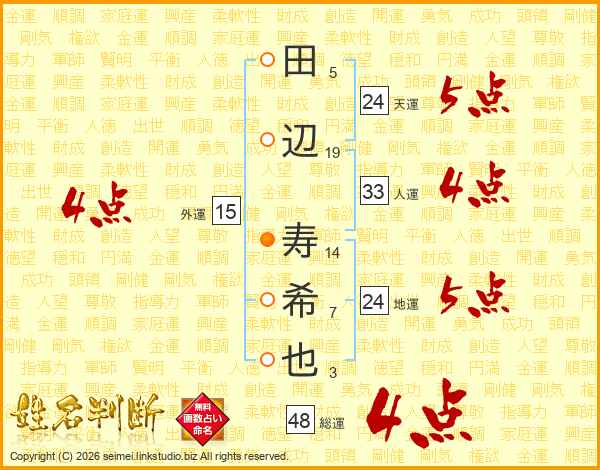田辺寿希也さんの総運は48画の4点!