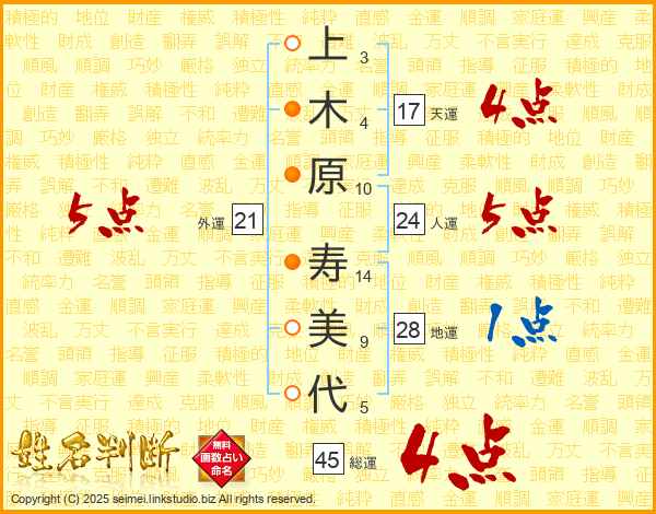 上木原寿美代さんの総運は45画の4点!