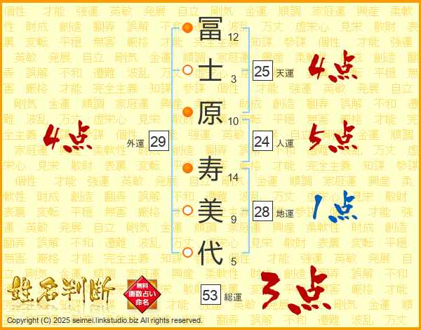 冨士原寿美代さんの天運は25画の4点!