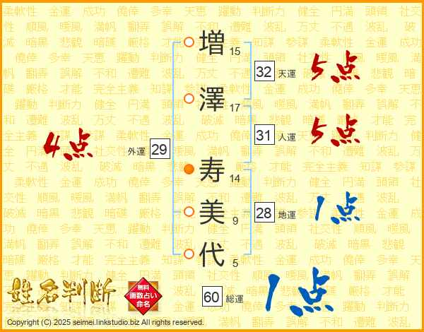 増(15画)澤(17画) 寿(14画)美(9画)代(5画)