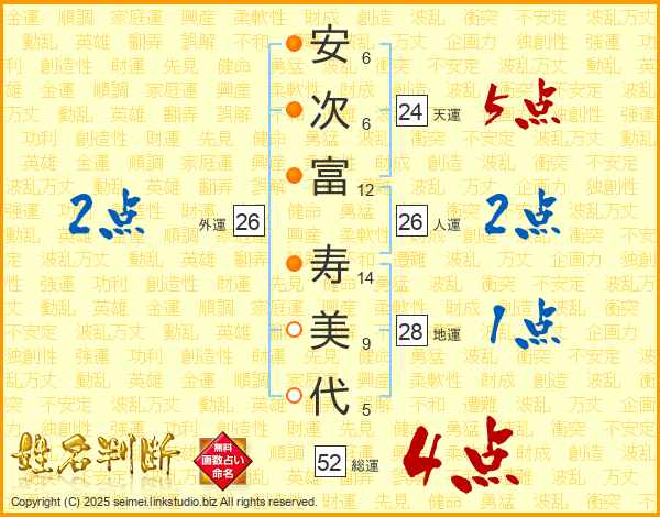 安次富寿美代さんの総運は52画の4点!