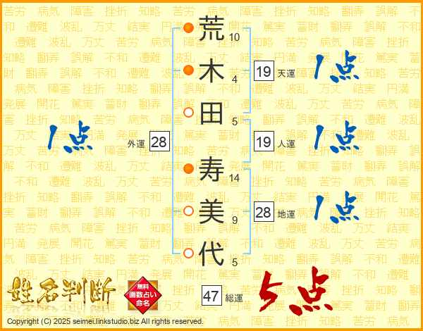 荒木田寿美代さんの総運は47画の5点!