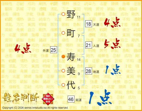 野町寿美代さんの総運は46画の1点!