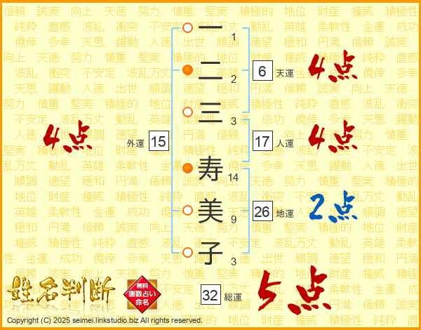 一二三寿美子さんの総運は32画の5点!