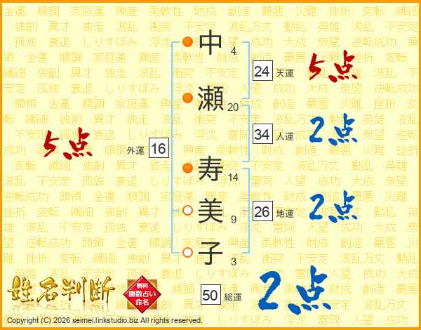 中瀬寿美子さんの人運は34画の2点!