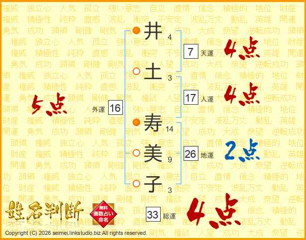 井(4画)土(3画) 寿(14画)美(9画)子(3画)