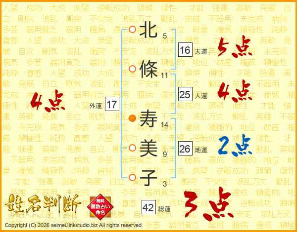 北條寿美子さんの総運は42画の3点!