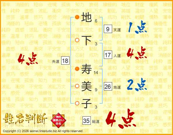 地下寿美子さんの総運は35画の4点!