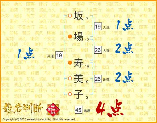坂場寿美子さんの総運は45画の4点!