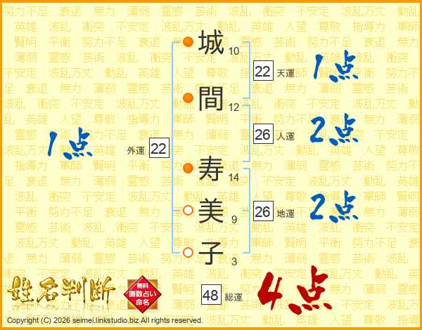 城間寿美子さんの総運は48画の4点!