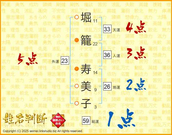 堀籠寿美子さんの総運は59画の1点!