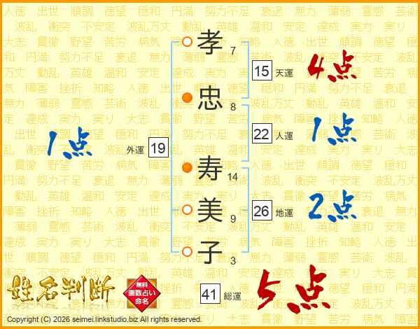 孝忠寿美子さんの総運は41画の5点!