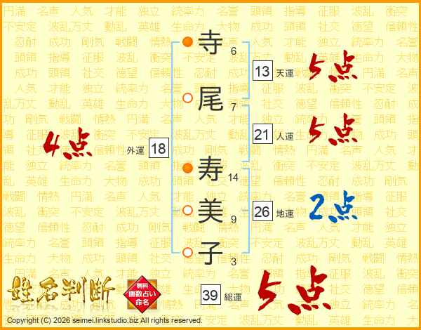 寺尾寿美子さんの総運は39画の5点!