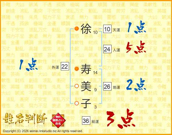 徐寿美子さんの地運は26画の2点!