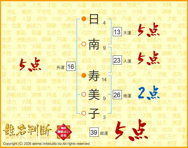 日南寿美子さんの総運は39画の5点!