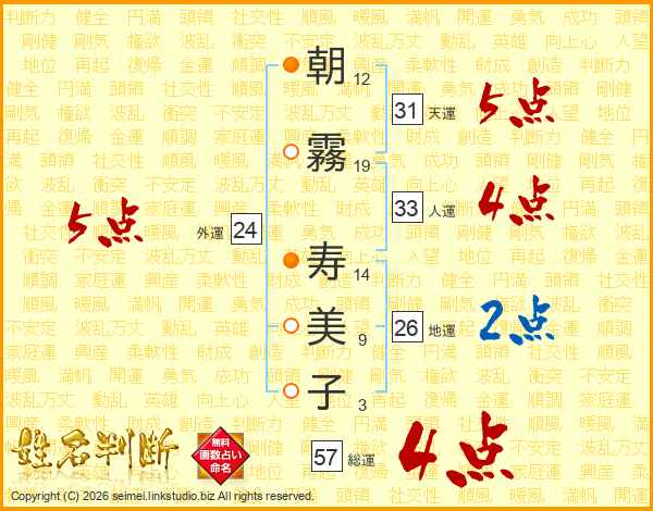 朝霧寿美子さんの総運は57画の4点!