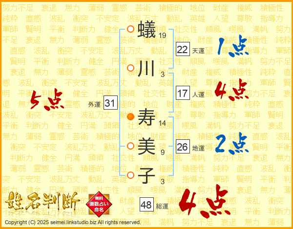 蟻(19画)川(3画) 寿(14画)美(9画)子(3画)
