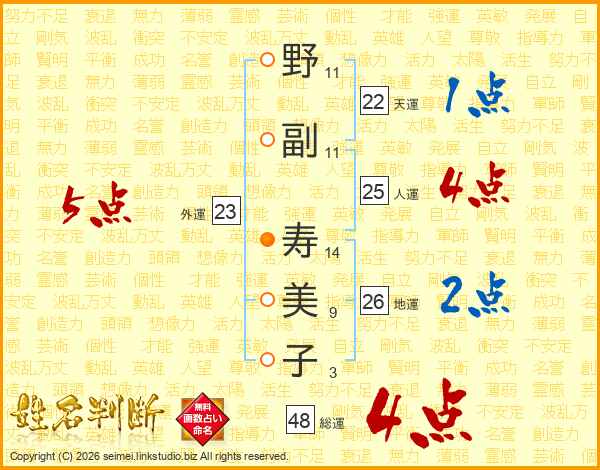 野副寿美子さんの総運は48画の4点!