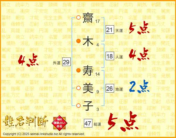 齋木寿美子さんの総運は47画の5点!