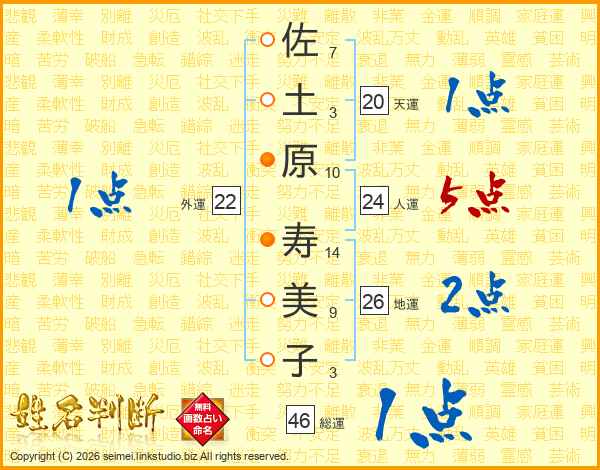 佐土原寿美子さんの総運は46画の1点!