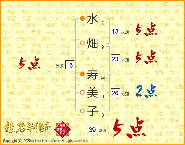 水畑寿美子さんの総運は39画の5点!