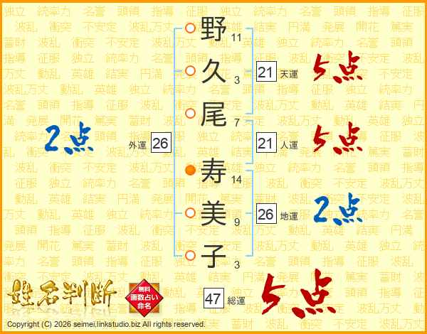 野久尾寿美子さんの総運は47画の5点!