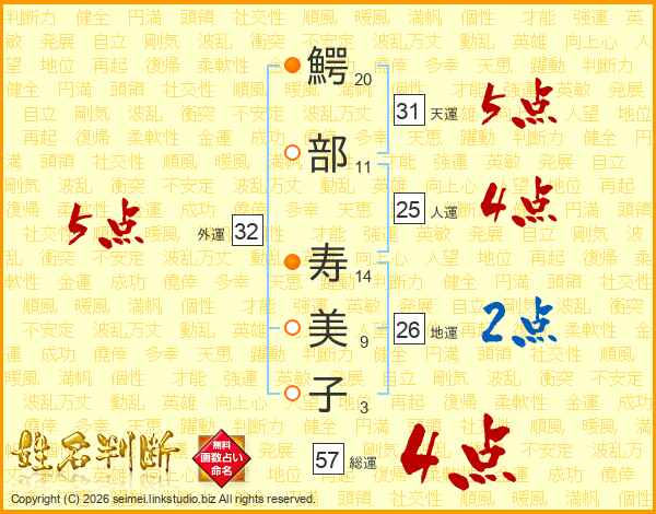 鰐部寿美子さんの外運は32画の5点!