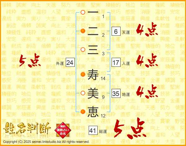 一(1画)二(2画)三(3画) 寿(14画)美(9画)恵(12画)