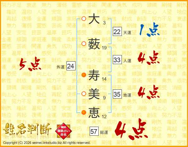 大(3画)薮(19画) 寿(14画)美(9画)恵(12画)