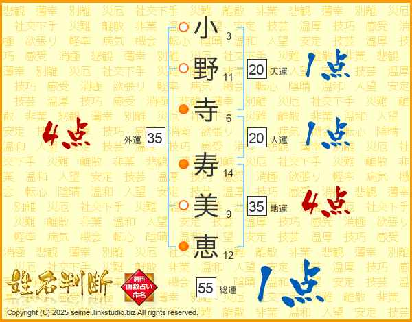 小野寺寿美恵さんの外運は35画の4点!