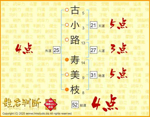 古小路寿美枝さんの総運は52画の4点!