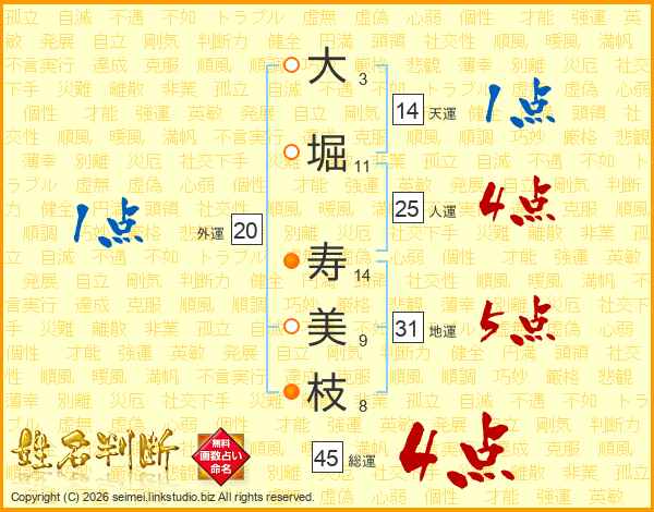 大堀寿美枝さんの総運は45画の4点!