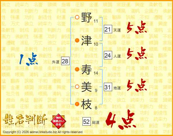 野津寿美枝さんの総運は52画の4点!