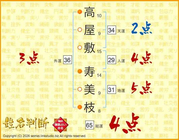 高屋敷寿美枝さんの総運は65画の4点!