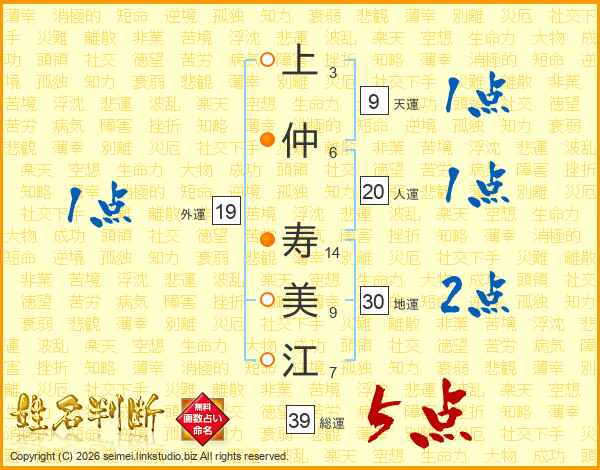 上仲寿美江さんの総運は39画の5点!