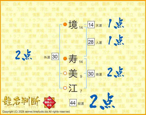境寿美江さんの総運は44画の2点!