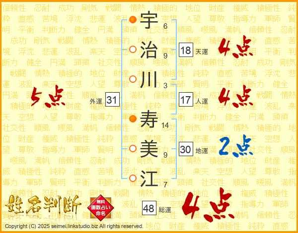 宇治川寿美江さんの総運は48画の4点!
