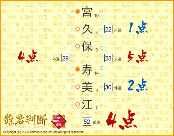 宮久保寿美江さんの総運は52画の4点!