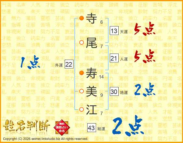 寺尾寿美江さんの天運は13画の5点!