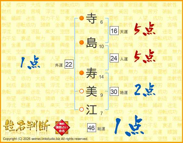 寺島寿美江さんの地運は30画の2点!