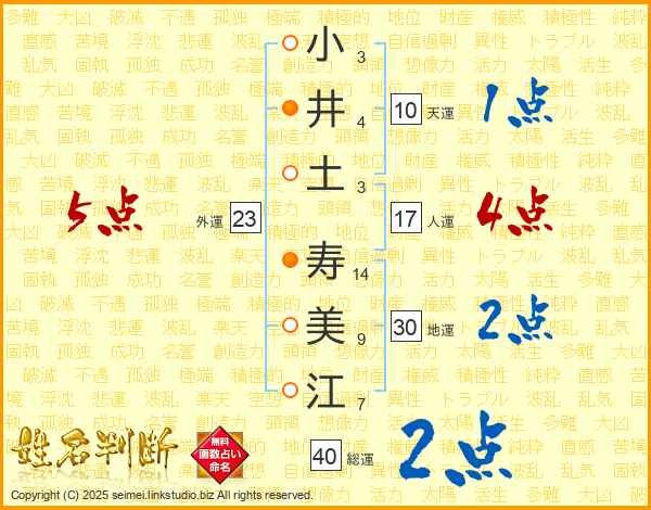 小(3画)井(4画)土(3画) 寿(14画)美(9画)江(7画)