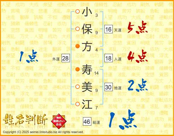 小保方寿美江さんの総運は46画の1点!