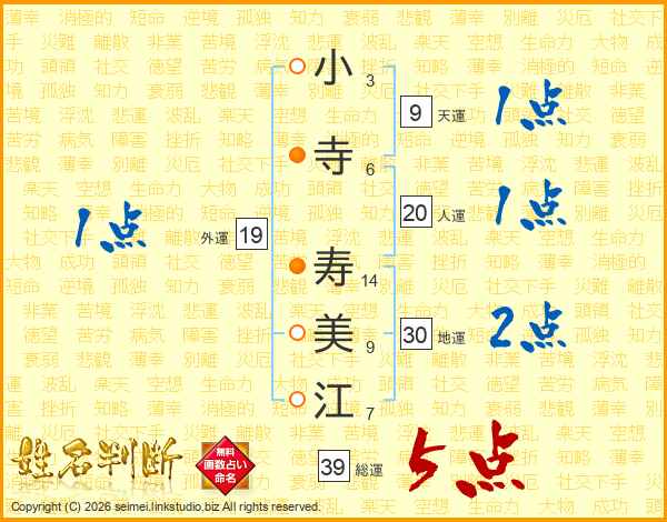 小(3画)寺(6画) 寿(14画)美(9画)江(7画)