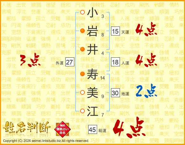 小(3画)岩(8画)井(4画) 寿(14画)美(9画)江(7画)