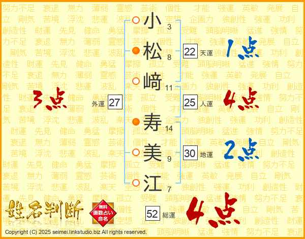 小松﨑寿美江さんの人運は25画の4点!
