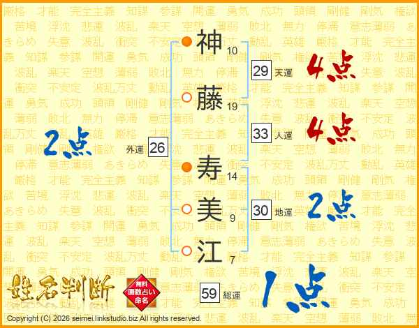 神(10画)藤(19画) 寿(14画)美(9画)江(7画)